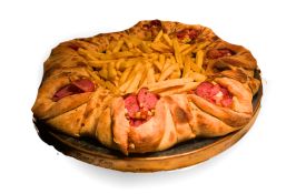 PIZZA TIPO GUIRLANDA SABOR DA CASA (QUEIJO, PRESUNTO, CALABRESA, OVO, BACON E MILHO)