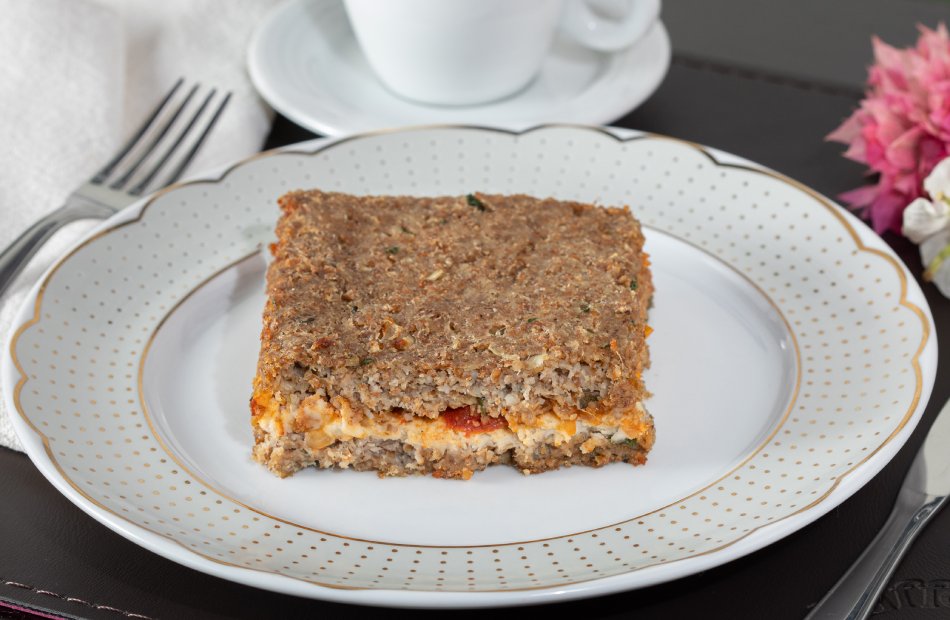 Quibe assado recheado com tomates-cereja frescos, cebolas caramelizadas, e uma porção de tahine no tempero, enriquecendo-o com esse toque especial. Sem lactose. Tempo de espera: 12 min