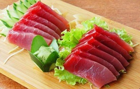 SASHIMI DE SALMÃO SELADO COM GERGELIM. ACOMPANHA MOLHO DE OSTRAS