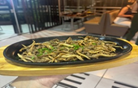 250 GRAMAS DE SALMÃO MARINADO NO LIMÃO E NO AZEITE DE OLIVA TRUFADO,CEBOLA ROXA E CEBOLA CRISPY, FINALIZADO COM SAL ROSA